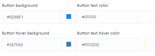 - Specify colors for the chat widget`s button background, button text color, button hover background, and button text hover color.